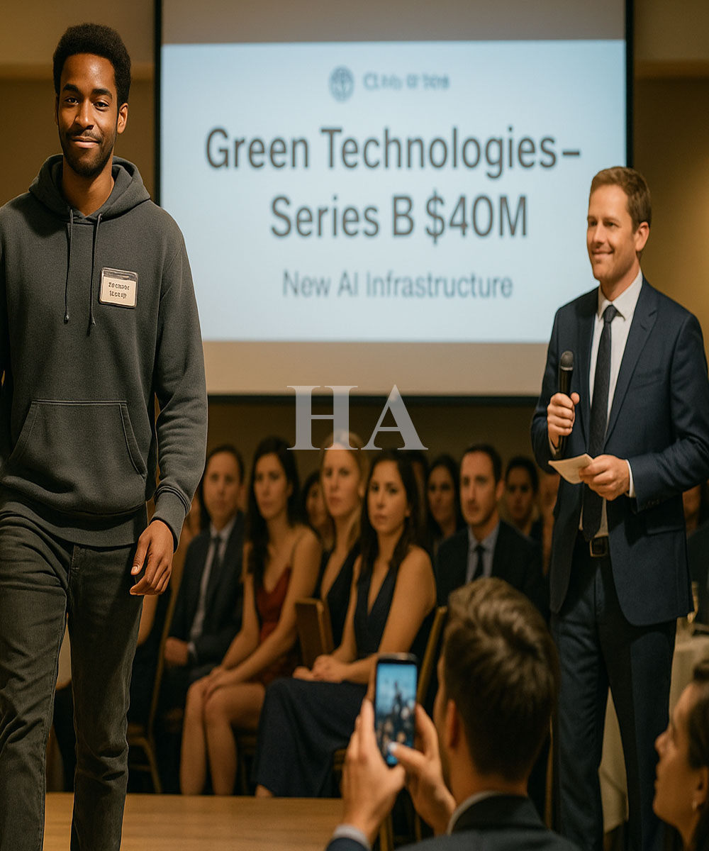 La confusión prendió como una chispa en papel seco. Una risa nerviosa se ahogó a medio nacer. Alguien preguntó ¿qué? sin creer que alguien respondería. Marcus sacó el teléfono del bolsillo, tocó una vez. La proyección cambió: se tragó el carrusel de fotos y vomitó titulares. Green Technologies cierra Serie B de 40 millones. La nueva cara de la infraestructura de IA. Una portada de revista en la que Marcus aparecía cinco años mayor y con traje, pero inconfundible. Un susurro se convirtió en exclamación mal contenida: