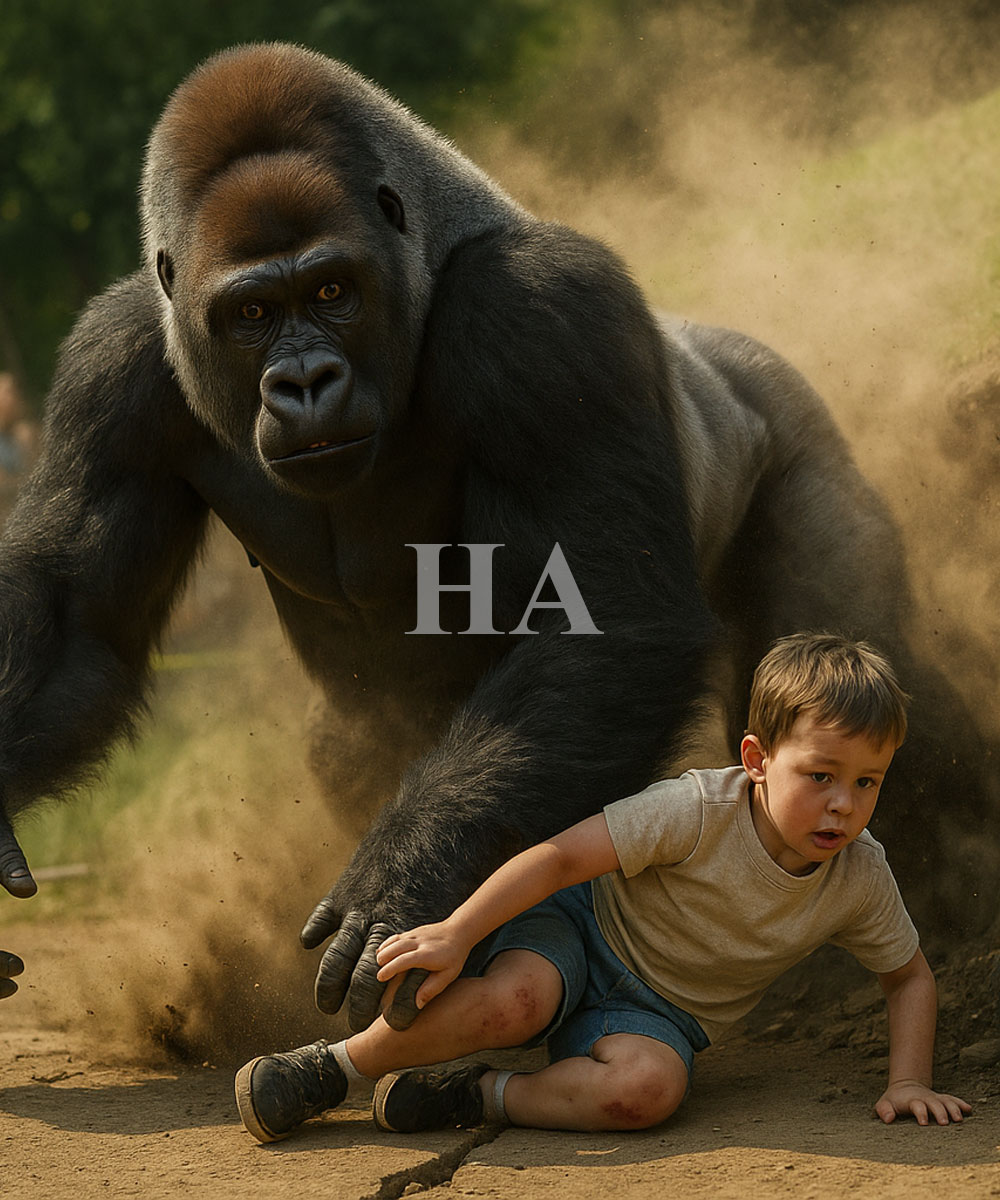 El primer golpe sonó como un trueno dentro del recinto de los gorilas. Un puñetazo descomunal contra el suelo, seguido de una bocanada de aire espesa, caliente, casi visible. El macho de lomo plateado —Bongo, seis cientos libras de músculo y memoria— clavó la mirada más allá del cristal reforzado, por encima de las cabezas de los visitantes, hacia la pendiente que cerraba el paisaje del zoológico. El personal se quedó inmóvil. Los turistas retrocedieron. Algunos niños rompieron a llorar. Y, sin embargo, en medio de la estampida contenida, un pequeño de no más de cuatro años permaneció quieto, con la palma pegada al vidrio, como si en aquella frontera transparente hubiera una verdad que los adultos no alcanzaban a ver.