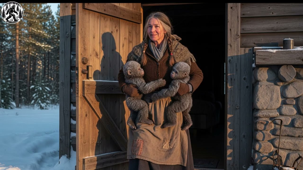Abigail descendió del porche con la torpeza que dan las botas enterrándose en nieve reciente. Avanzó a tientas, ladeando el cuerpo para cubrirse del vendaval. Entonces los vio: un bulto, luego otro, apiñados contra la pared exterior de la cabaña, semienterrados bajo una costra de blanco. En un primer golpe de vista creyó que eran niños perdidos; esa idea le aceleró el corazón. Pero al agacharse, la realidad le heló una porción del alma que ya estaba fría: no eran niños humanos. Eran dos criaturas pequeñas, de tres o cuatro pies de altura, con el cuerpo cubierto por un pelaje enmarañado que la nieve había endurecido; rostros anchos, de frente pronunciada, ojos enormes y oscuros que parpadeaban con un cansancio antiguo. Temblaban con una violencia que hacía vibrar las mantas de pelo que los cubrían.