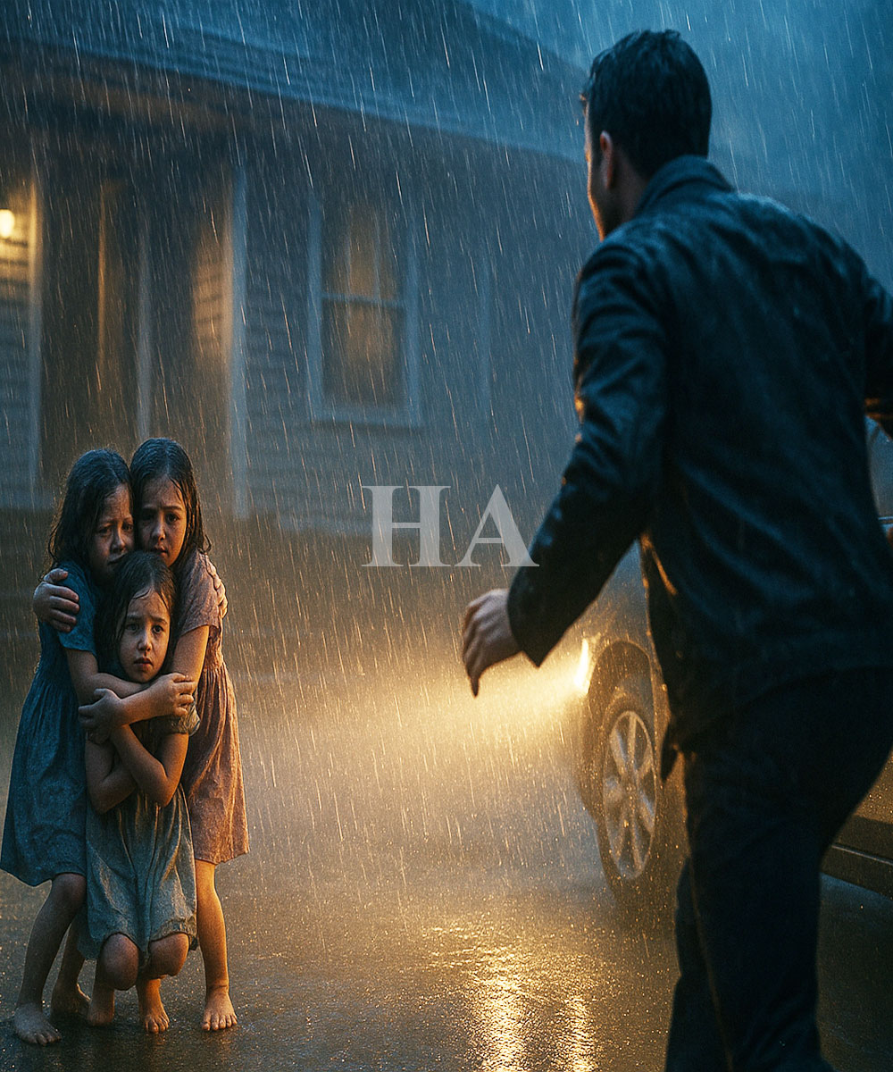 La casa, que alguna vez fue un santuario lleno de risas y amor, se alzaba oscura y amenazante. Mi corazón se aceleró al ver tres pequeñas figuras acurrucadas en el porche, empapadas y temblando.