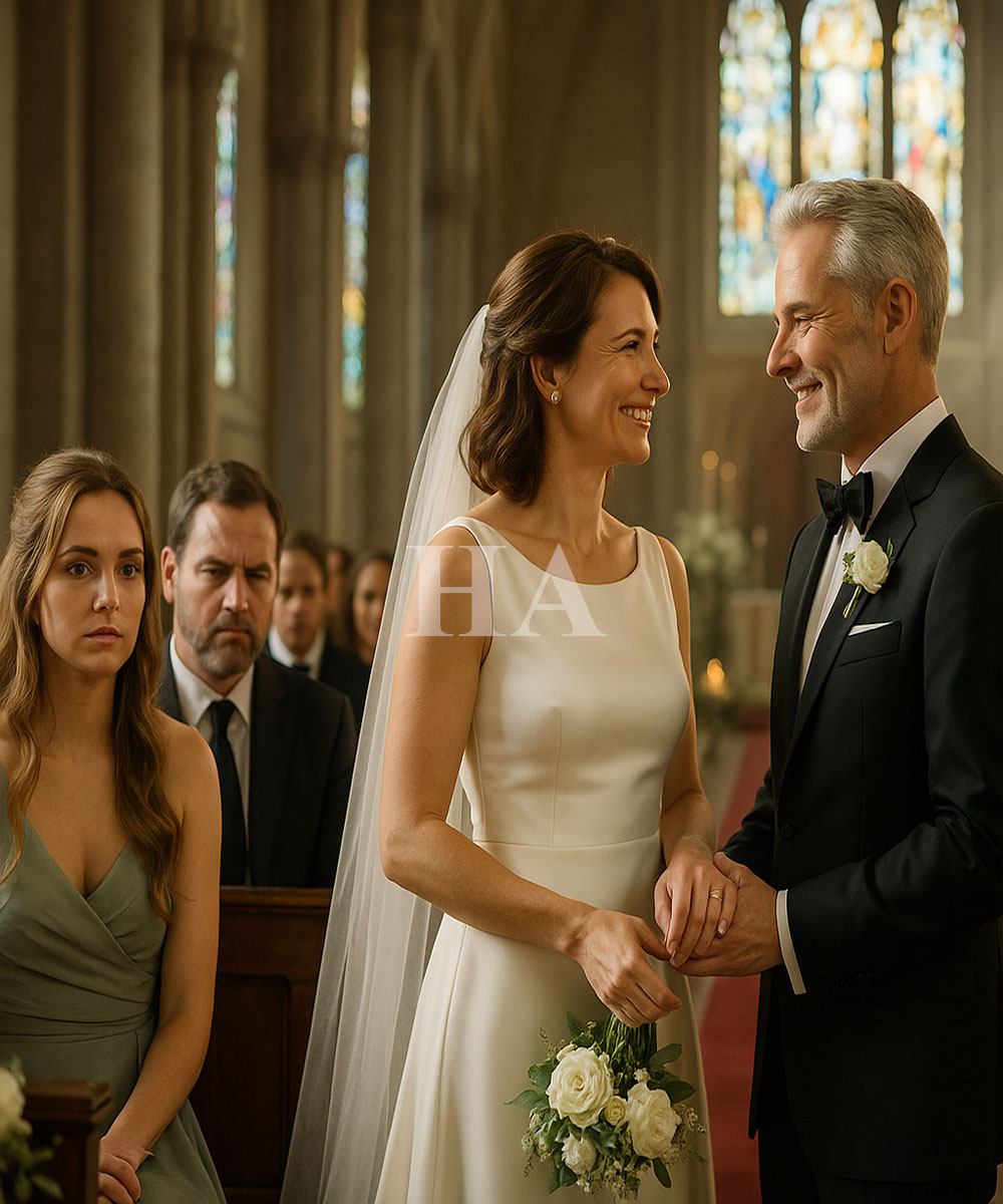 Robert esperaba en el altar, impecable, pero con la mirada sólo para ella. Lo que empezó como estrategia se volvió otra cosa: un hogar que se levantaba con ladrillos nuevos. Cuando pronunciaron los votos, hablaron de pérdidas, de cenizas y de todo lo que puede crecer después. Se besaron. La gente aplaudió. En la primera fila, Lena lloró. No de alegría.