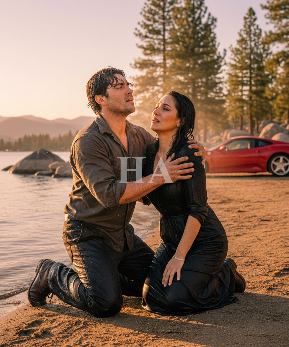 Fue durante un respiro, de soslayo, cuando vio el destello rojo estacionado junto al sendero: un Ferrari impecable, absurdo en aquel paisaje de piedras y pinos. No importaba. Volvió al pecho, a su conteo, a esa terquedad que a veces funciona. Y entonces, un espasmo: la mujer tosió con violencia, expulsó agua, y la vida regresó como una bofetada dulce. Abrió los ojos, desorientada; respiró. Diego se sentó de golpe sobre la arena, sin sentir las piernas, con un alivio tan grande que lo dejó a punto de reír o de llorar.