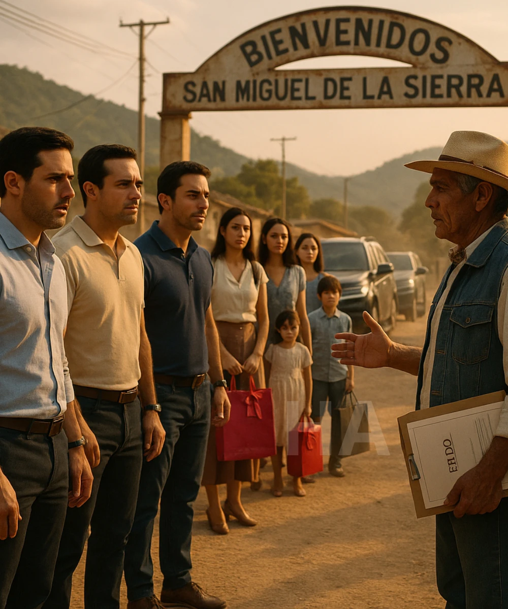 Pero, al bajar de sus vehículos en la entrada del pueblo San Miguel de la Sierra, antes incluso de saludar a su padre, se encontraron con don Ramiro, el jefe comunal. Su rostro era serio, y sus palabras, aún más frías: