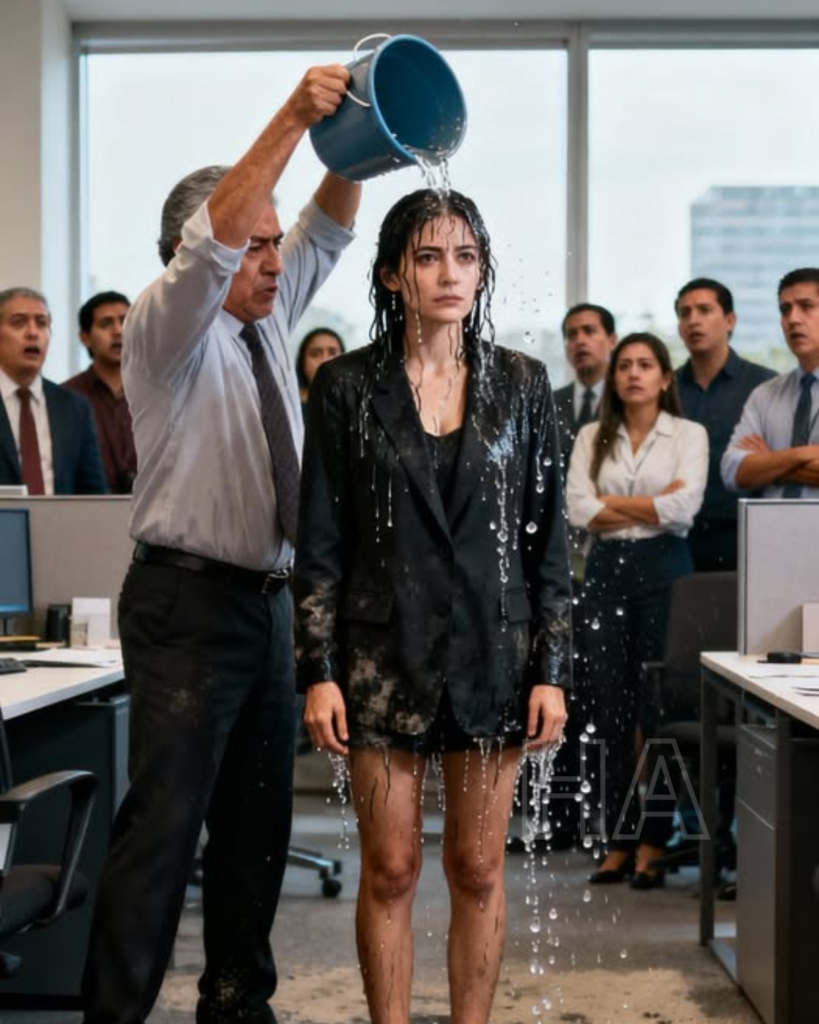 Julián caminó hasta el dispensador de agua, tomó una cubeta de limpieza que estaba junto a la fotocopiadora y regresó hacia Isabel con pasos calculados. La oficina cayó en un silencio mortal. Todos sabían que algo terrible estaba a punto de suceder, pero nadie se atrevió a intervenir.