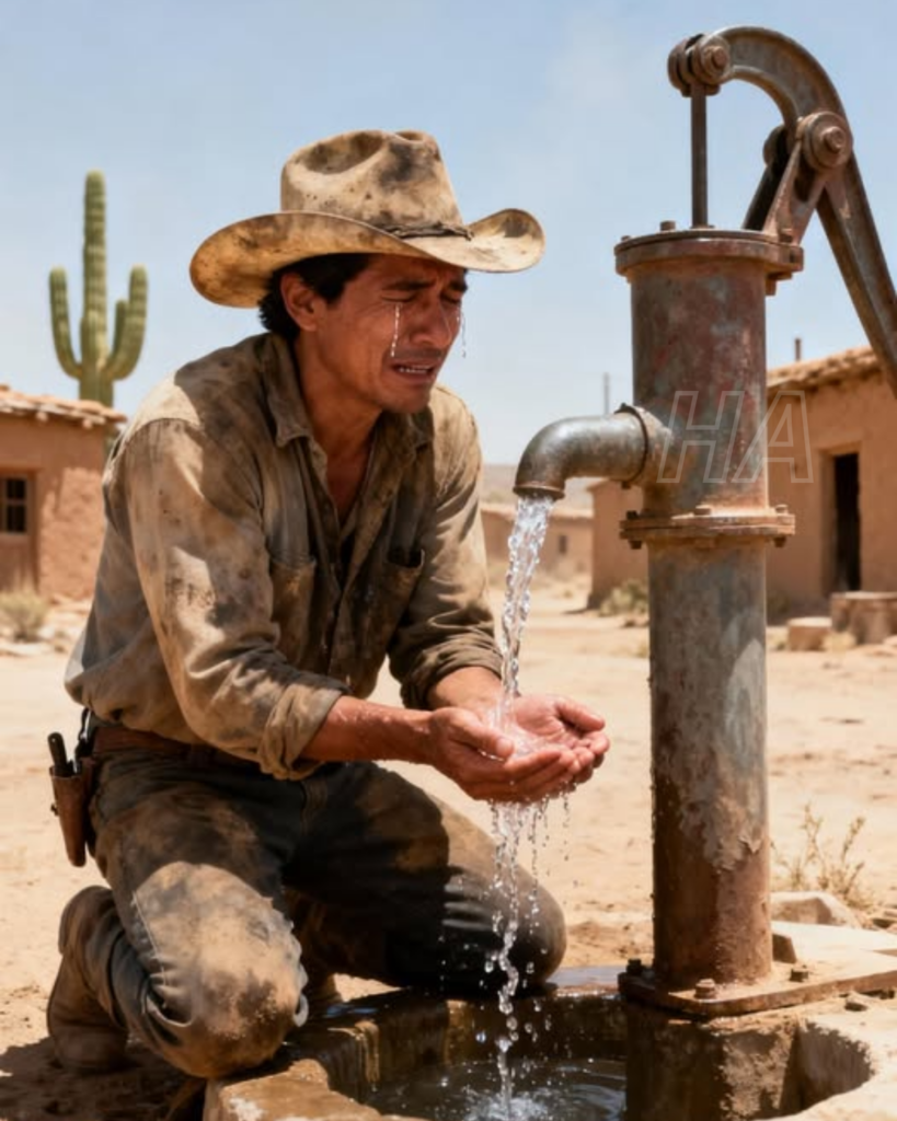 De repente, un chorro de agua cristalina y fresca brotó con una fuerza descomunal, empujando a Mateo hacia arriba. No era un pozo seco; era la entrada a un acuífero subterráneo virgen que la sequía no había podido tocar, protegido por una barrera de roca mineralizada. Mateo salió del pozo empapado, gritando de alegría, mientras el agua bendita inundaba la tierra seca y el oro brillaba bajo el sol mexicano.