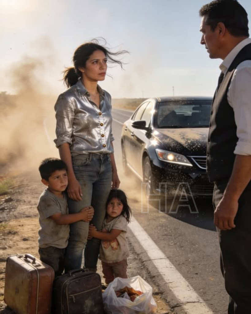 Adriana Montes llevaba horas detenida al borde de la carretera federal, en un tramo donde el polvo se levantaba con cada vehículo que pasaba sin detenerse. El sol de la tarde ya no quemaba como al mediodía, pero seguía cayendo pesado sobre el asfalto, haciendo vibrar el aire. A su alrededor no había más que silencio, calor y una espera que parecía eterna.