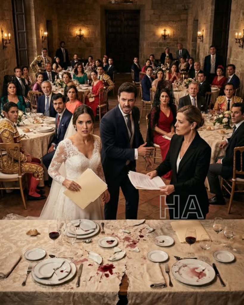 Pero a los pocos minutos, Javier se levantó de golpe. Con la mandíbula tensa, agarró el borde del mantel y lo arrancó con un tirón. Platos, copas y bandejas se fueron al suelo como una ola; la gente gritó, alguien se levantó para ayudar, y el DJ paró la música. Javier, rojo de rabia, señaló hacia mí y soltó, a voz en cuello:
