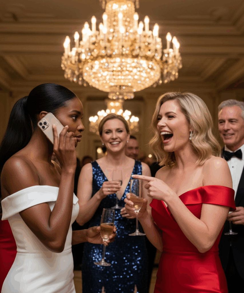 A una mujer que claramente había perdido su invitación se le permitió entrar solo porque Jacke la reconoció de eventos anteriores. Pero Simone se quedó afuera temblando con su costoso vestido, siendo tratada como una intrusa indeseada. En un momento dado, una mujer con un abrigo de visón pasó junto a ella y se alejó, como si estar cerca de Simone pudiera contaminarla. Otro invitado la miró fijamente, susurrándole a su acompañante que algunas personas simplemente no saben cuál es su lugar.