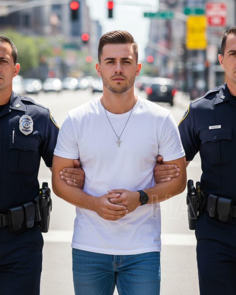 Algunos transeútes miraban en silencio, otros sacaban sus teléfonos para grabar. “Otro ladrón atrapado”, murmuró alguien y uno de los oficiales, al notar que lo filmaban, sonríó y dijo en voz alta, “Si vas a robar, aprende al menos a parecer rico. Risotadas. ” Comentarios sarcásticos. El sistema haciendo lo que siempre ha hecho, juzgar antes de escuchar. El hombre, sin embargo, no decía nada. Caminaba con la cabeza en alto, como si esa escena no lo rompiera, como si algo dentro de él ya supiera que todo cambiaría en minutos.