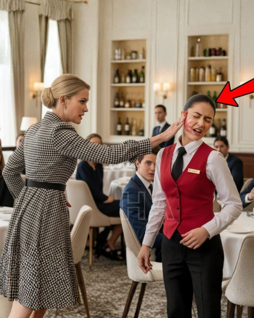 Los cubiertos se quedaron suspendidos a medio camino. El cuarteto de cuerdas se apagó como si alguien hubiera cortado la corriente. Y en la mejilla pálida de la mesera —Elena— empezó a florecer una marca roja, perfecta, de cinco dedos.