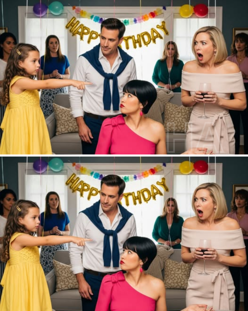 La niña señaló a una mujer vestida con un elegante vestido rojo, de pie junto a la barra, riéndose con Ryan. Clara reconoció inmediatamente a Sabrina Cole, colega de Ryan: elegante, confiada y demasiado cómoda en su hogar.