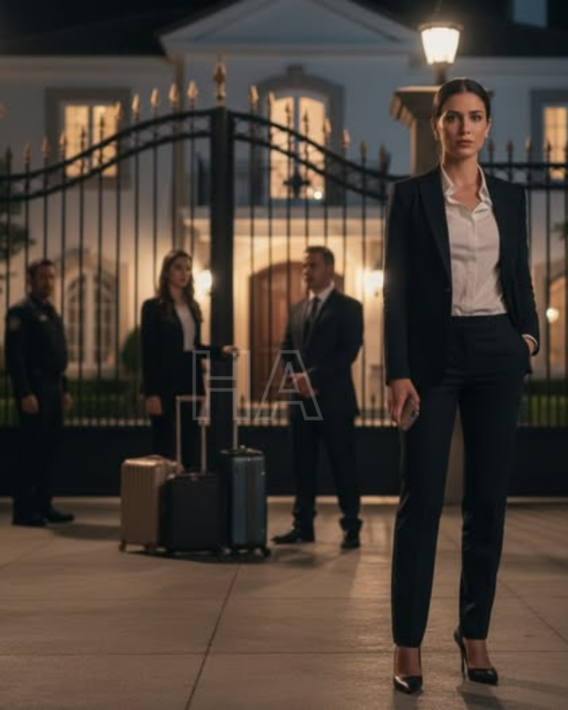 El sábado al mediodía, un taxi se detuvo frente a la mansión. Mark bajó primero, sudado y molesto. Angela lo siguió con una maleta. El control del portón no funcionó. Un guardia desconocido les informó que la propiedad había sido vendida y que ya no tenían autorización para entrar. Angela dejó caer la maleta; Mark gritó. La puerta se abrió, pero no era Sophia. Un representante del nuevo dueño les pidió retirarse o llamarían a la policía.