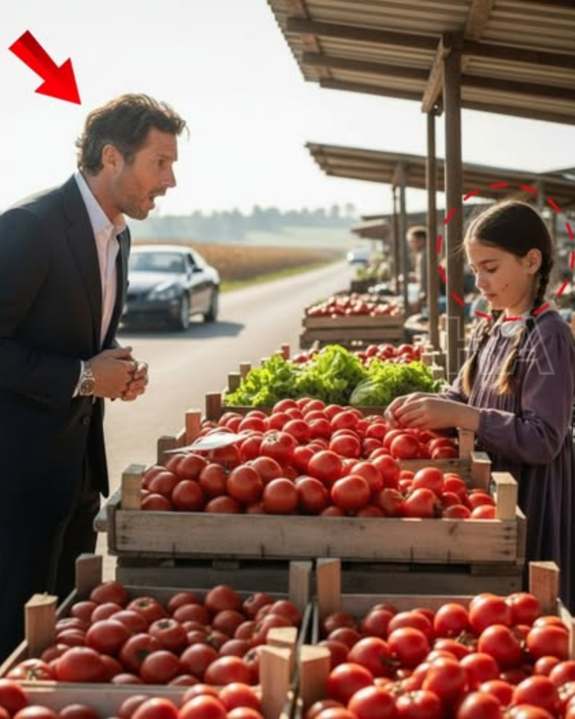 Detrás de una mesa hecha con tablas viejas, una niña de unos ocho años organizaba jitomates en pequeños montones. Llevaba un vestido morado desteñido y el cabello castaño recogido en dos trenzas que se movían cada vez que se inclinaba. Sus manos pequeñas acomodaban cada jitomate con cuidado, como si cada fruto fuera algo valioso.