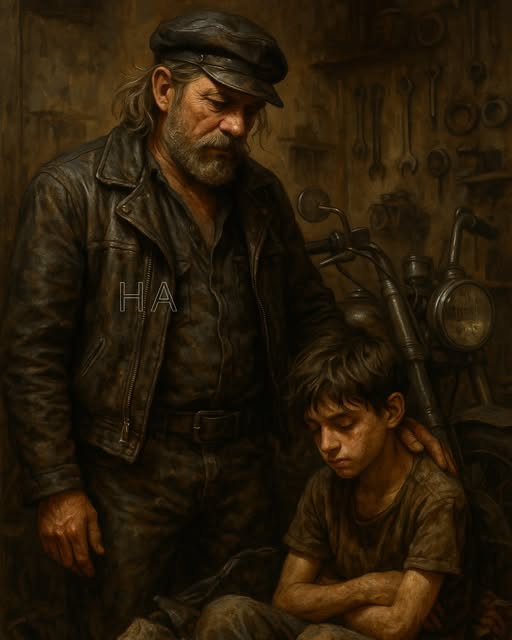 A las cinco de la mañana, un ruido metálico retumbaba desde un pequeño taller en la esquina. En la acera, un chico de catorce años se acurrucaba junto a unas bolsas negras de basura: hambriento, sucio y agotado. Nadie se detenía, nadie lo miraba, salvo un hombre alto, de barba espesa, brazos tatuados y chaqueta de cuero gastada, que lo observó por un instante y preguntó:
