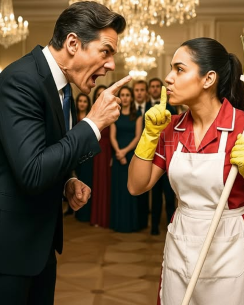 —Disculpe, señor —respondió, tranquila—. Me pidieron dejar esto limpio antes de que empezara el evento.