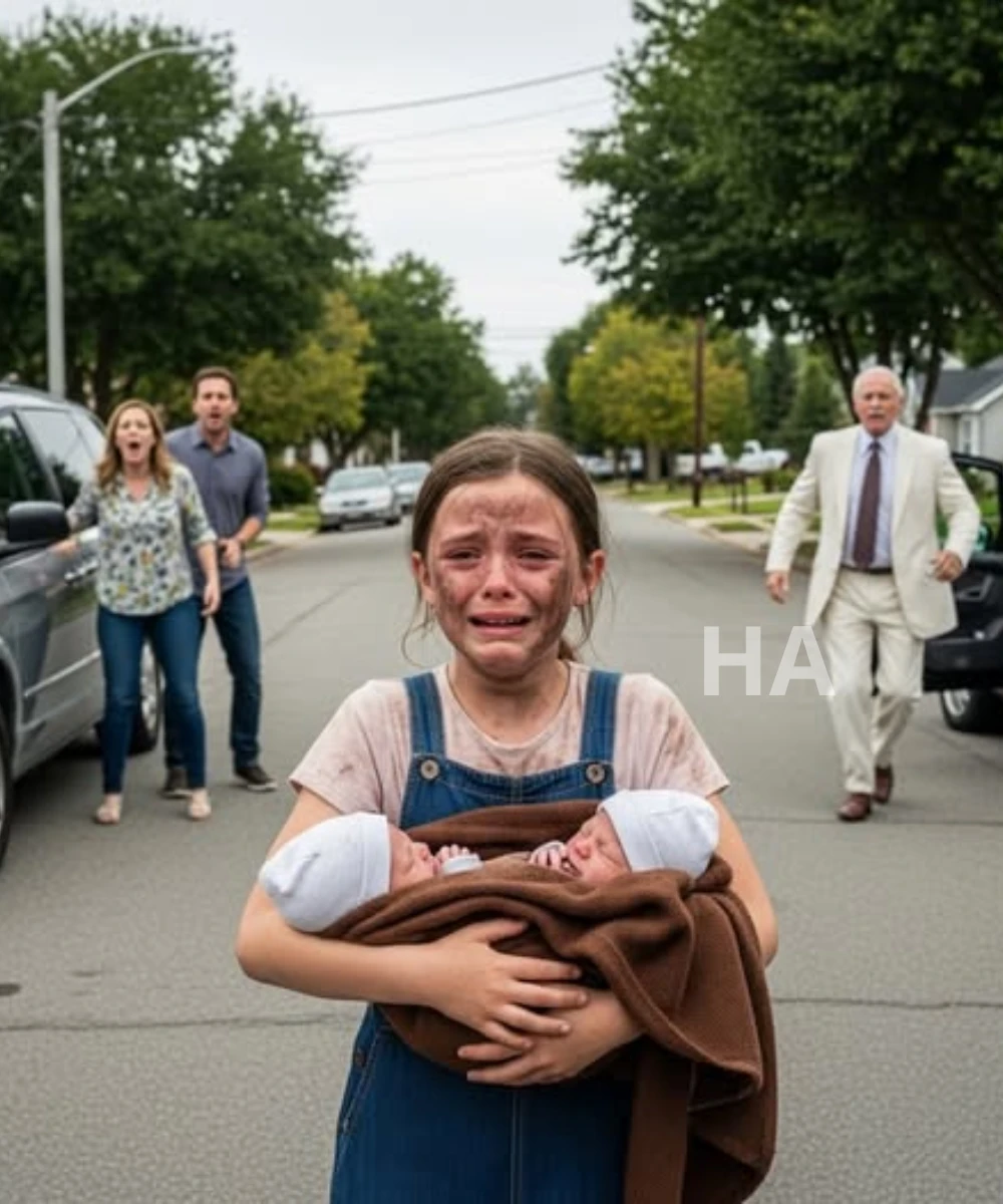 Una niña de 8 años fue arrastrada hasta la mitad de la calle por sus tíos, quienes la reprendieron y la echaron de casa simplemente porque había añadido una cucharada extra de leche para sus hermanos gemelos de 6 meses que ardían en fiebre. La pequeña los abrazaba con fuerza mientras sus pies descalzos temblaban sobre el pavimento. De repente, un coche de lujo se detuvo. Un hombre descendió y con una sola frase cambió el destino de los tres niños para siempre.