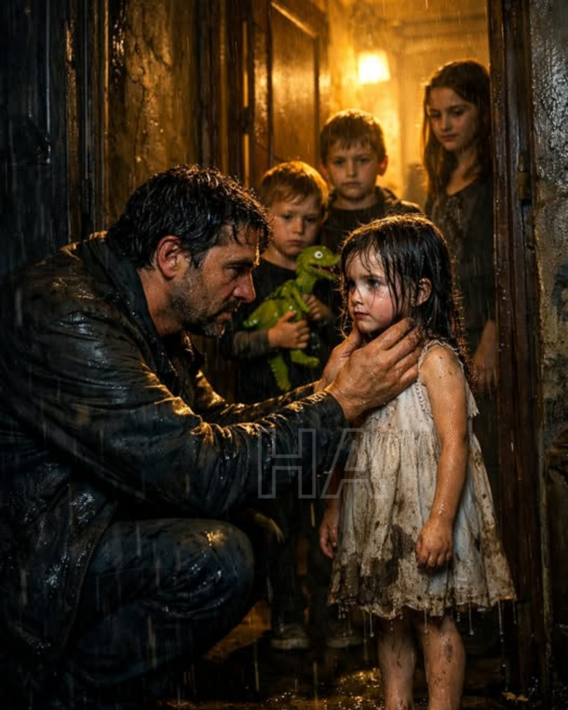 La niña dudó, pero dio un paso adelante. Lucas apareció de inmediato con una manta vieja. Sara, de once años, observaba desde la cocina, ya entendiendo que algo serio estaba ocurriendo. Diego, el más pequeño, se acercó sin miedo y le ofreció su dinosaurio verde.