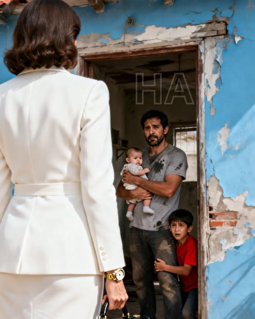 Laura bajó del coche con su traje a la medida y su reloj suizo brillando al sol. Se sintió fuera de lugar, pero lo disimuló levantando la barbilla y caminando con paso firme. Llegó hasta una vivienda azul desteñida, con una puerta de madera agrietada y el número 847 apenas visible.