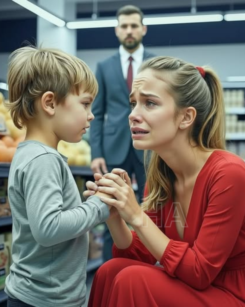 Lo llevó a la sección de frutas y verduras. Brillaban las manzanas rojas, las naranjas perfectas, los tomates como si fueran joyas. Allí, rodeada de abundancia ajena, se arrodilló frente a él y le tomó las manitos.