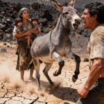 Baltazar no estaba descansando. El burro estaba en una esquina, golpeando frenéticamente el suelo con su pata sana. Escarbaba con desesperación, resoplando, insistiendo. Clara se levantó con las últimas fuerzas. —¿Qué haces, viejo? —murmuró. El burro la miró y soltó un rebuzno agudo. Clara se acercó y vio que la tierra que removía no era gris, sino oscura. Húmeda. Cayó de rodillas y empezó a cavar con sus manos, rompiéndose las uñas, ignorando el dolor. Y entonces, el milagro brotó. Un hilo de agua turbia, marrón, pero bendita. —¡Agua! ¡Niños, agua!