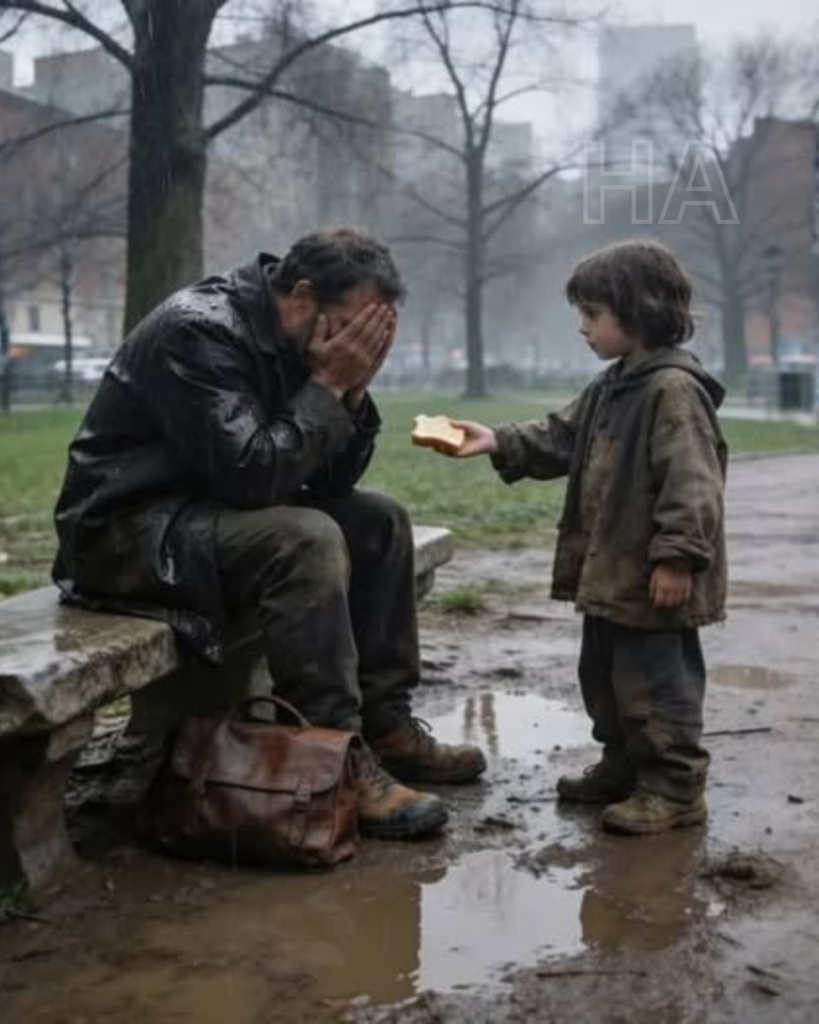 La vergüenza golpeó a Jonathan más fuerte que el duelo. Ahí estaba él, ahogándose en tristeza pese a la riqueza y el privilegio, mientras una niña que no tenía nada le ofrecía comida. Se agachó un poco para quedar a su altura y se limpió la cara.