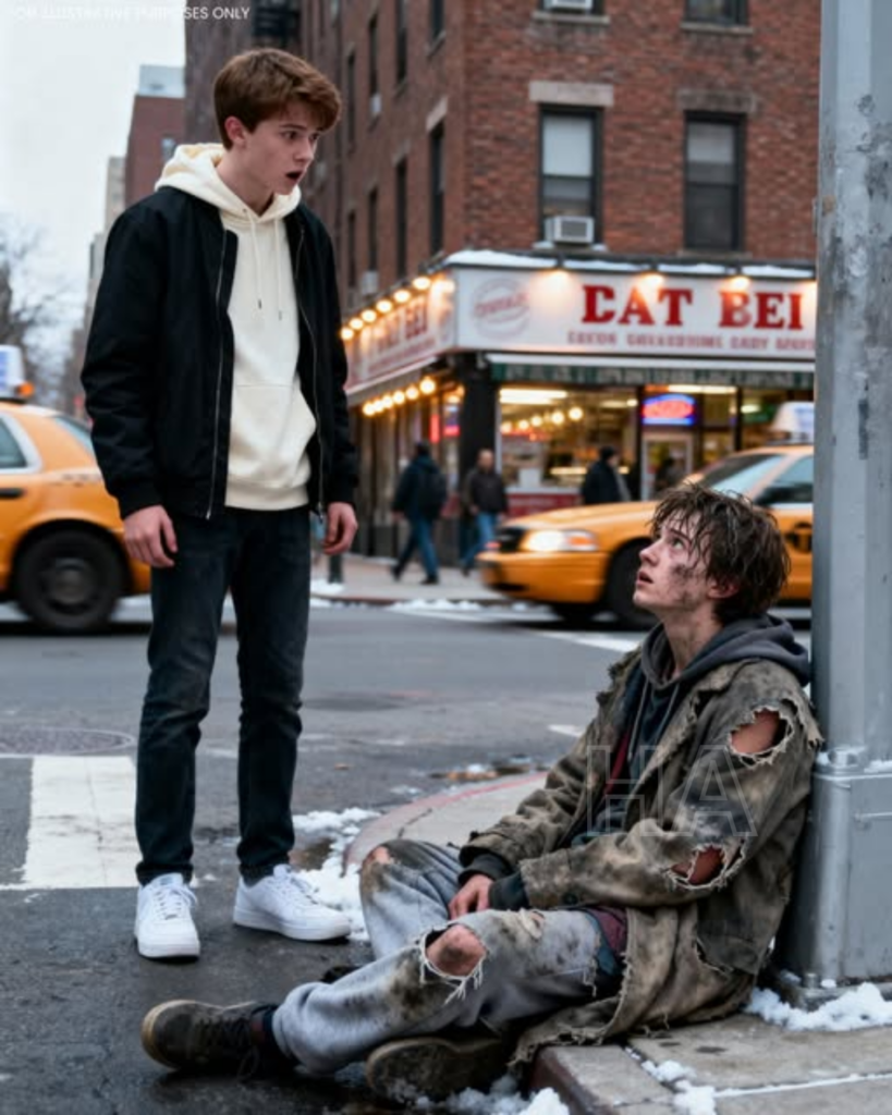 Tobias Rainer, de diecisiete años, había crecido moviéndose por los relucientes pasillos de cristal del Hotel Rainer Plaza con ese tipo de autoridad tranquila que otorga ser el hijo único de August Rainer. Los huéspedes lo admiraban. El personal se apartaba a su paso. Había sido criado para deslizarse por vestíbulos de mármol y pasillos de áticos como si todo el edificio fuera una extensión de su propio hogar. Sin embargo, en aquella tarde fría en la Avenida Lexington, todo lo que creía saber sobre quién era se detuvo abruptamente. Se detuvo cuando vio al chico sentado contra una señal de tráfico inclinada.