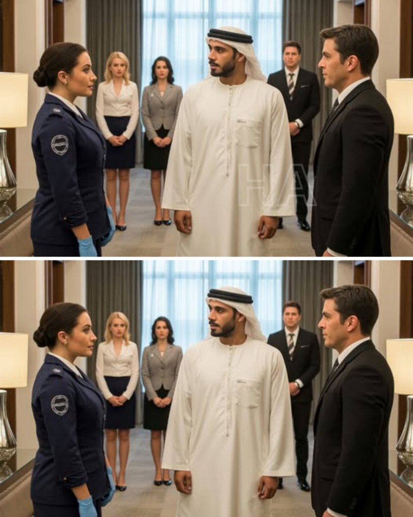 La gerente miró a Lucía como si la viera por primera vez. El jeque, sin cambiar el gesto, giró la cabeza hacia ella. El pasillo se llenó de un silencio más pesado que el mármol.