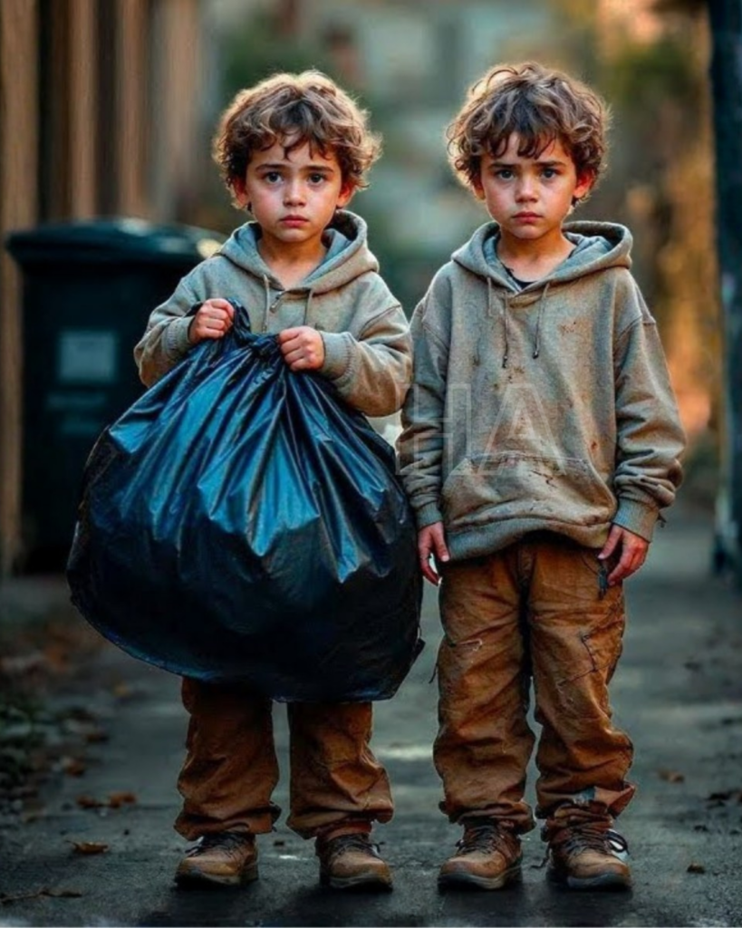 Los gemelos se quedaron clavados en el piso, como si el grito hubiera sido un lazo en el aire que les amarró los tobillos. La noche olía a aceite viejo y a lluvia reciente. En la boca del callejón, bajo un foco que parpadeaba, dos manos pequeñas apretaban una bolsa negra rebosante de restos de comida: tortillas endurecidas, una caja de arroz, pollo frío, pan a medio partir.
