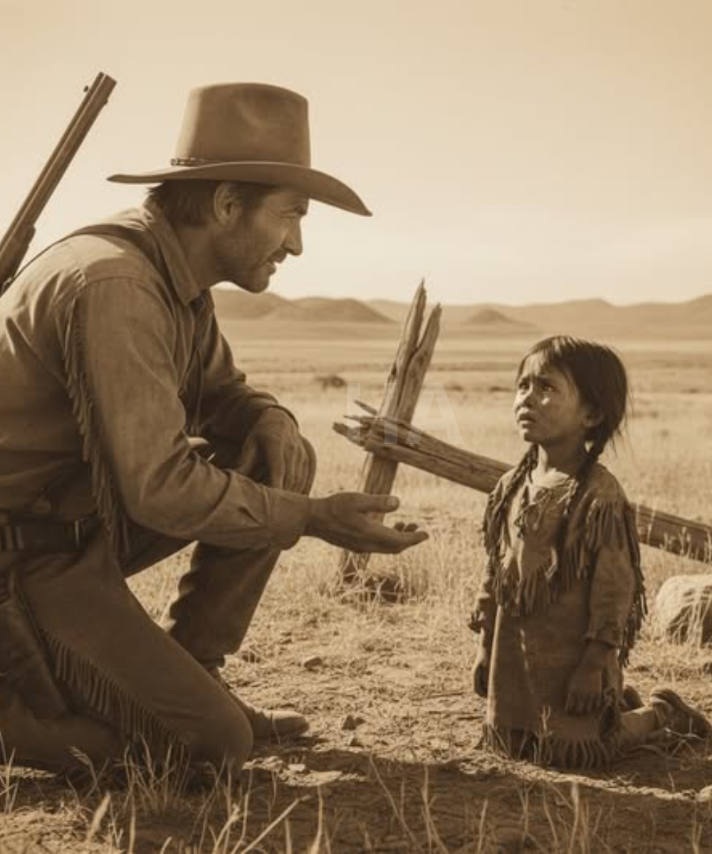Bear pensó en sus vecinos, en lo que dirían si lo vieran ayudando a una niña comanche. Pensó en las advertencias que había oído en el pueblo sobre las recientes tensiones con las tribus. Pensó en lo más inteligente, lo más seguro. Entonces volvió a mirar esos ojos desesperados y tomó la decisión que lo cambiaría todo. Sin decir palabra, Oso alzó a la niña en brazos. Pesaba casi nada y la llevó a su cabaña.