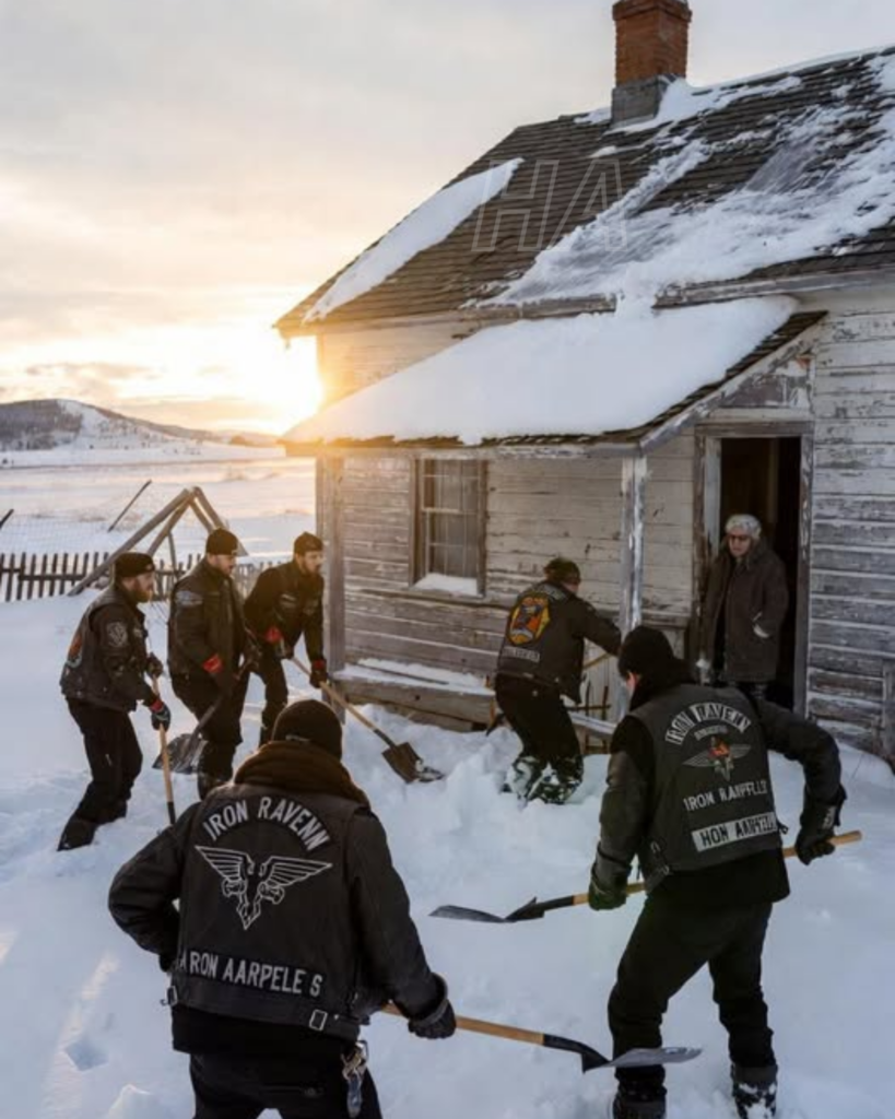 Uno despejaba la nieve acumulada contra las paredes con una pala ancha. Dos más retiraban el hielo del techo para aliviar el peso que amenazaba con hundir una sección debilitada. Otros cortaban leña del viejo cobertizo y la apilaban ordenadamente junto a la entrada.