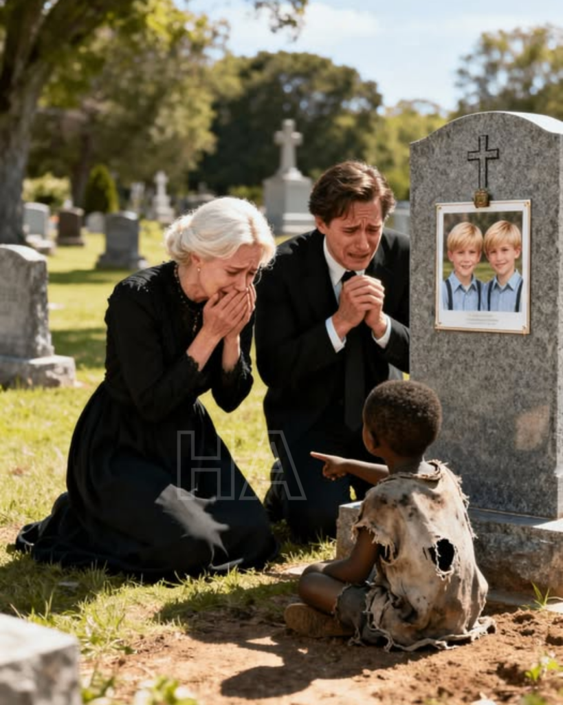 EN UN CEMENTERIO, FRENTE A LA LÁPIDA FRÍA DE SUS HIJOS, EL MILLONARIO Y SU ESPOSA ESTABAN DE RODILLAS, SIN FUERZAS, LLORANDO POR LOS DOS HIJOS GEMELOS, QUE HABÍAN FALLECIDO SIN EXPLICACIÓN. EL SILENCIO DEL CEMENTERIO SOLO ERA CORTADO POR EL LLANTO DE LA MADRE, HASTA QUE UNA PEQUEÑA VOZ INTERRUMPIÓ TODO.—SEÑOR, ELLOS NO ESTÁN AHÍ.