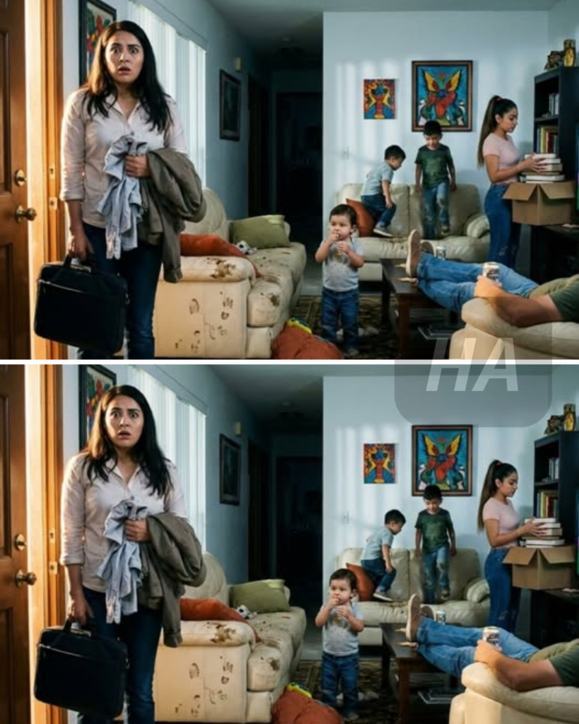El olor me pegó primero: palomitas, pañales, perfume dulce. Luego vi mi sala convertida en guardería de guerra. Mis sobrinos brincando con zapatos en mi sofá nuevo. Galletas desmigajadas en mi alfombra. Brad tirado en mi sillón, con los pies en mi mesa, cerveza en mano.