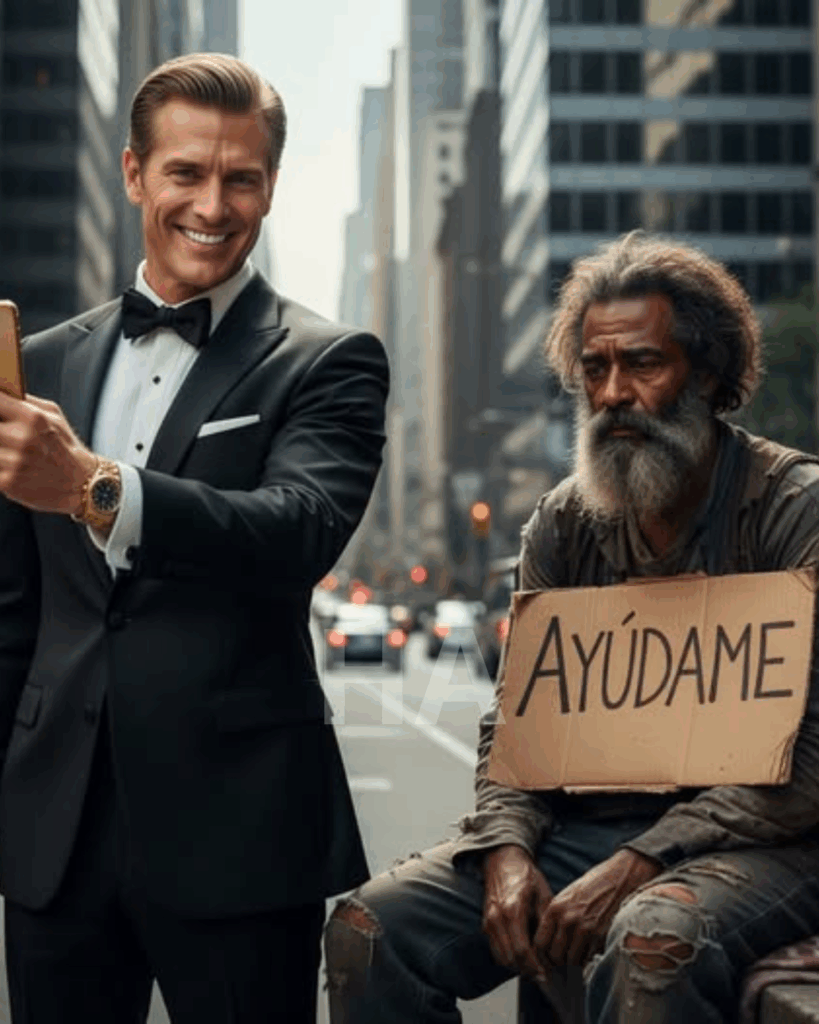 Su arrogancia era tan visible como su reloj Patekc Philip, que brillaba en su muñeca. Mientras Marcus discutía los detalles de su última adquisición corporativa, sus ojos se posaron en una figura que desentonaba completamente con el ambiente de lujo que lo rodeaba. Sentado en la entrada de un edificio corporativo estaba un hombre de aproximadamente 60 años con cabello gris despeinado y ropas gastadas que habían visto mejores días. Sus manos arrugadas sostenían un pequeño cartel de cartón que decía: “Cualquier ayuda es bienvenida.